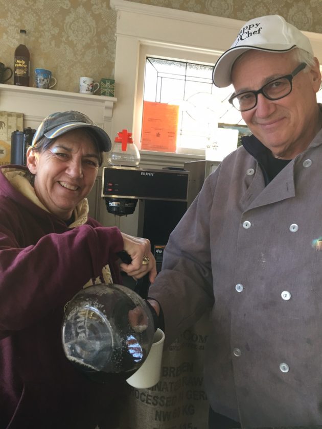 Patty Franco serves her husband, Tom, a cup of joe at Joe’Z Coffee House, which is located at 98 Forest Avenue in Jamestown.