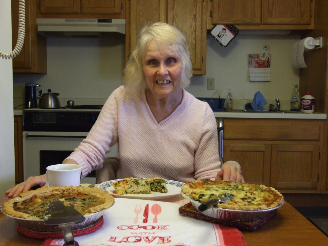 Cindy Lees likes to make and eat quiche. Here she displays Spinach Quiche and Crab Quiche.