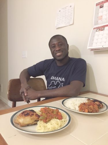 The next time you hear someone say “men can’t multi-task,” don’t believe it. Joshua Okrah of Randolph can slice, run a blender, saute, stir, season and keep an eye on the oven, all at the same time.