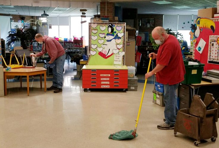 During these difficult times, Jamestown Public School’s 50-member custodial staff, 12 maintenance employees, two bus mechanics and 12 bus drivers are reporting daily to work as essential workers in the district.