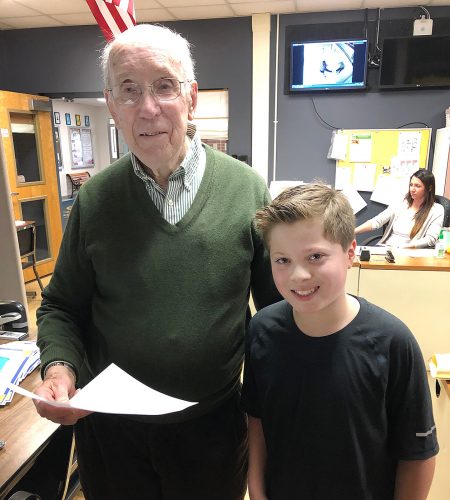 Persell Middle School has a monthly visitor who brings joy to students’ faces – Kiwanis Club of Jamestown member, Larry Brown, who has delivered the Kiwanis Terrific Kids news every single month (at every Jamestown middle school) since 1998.