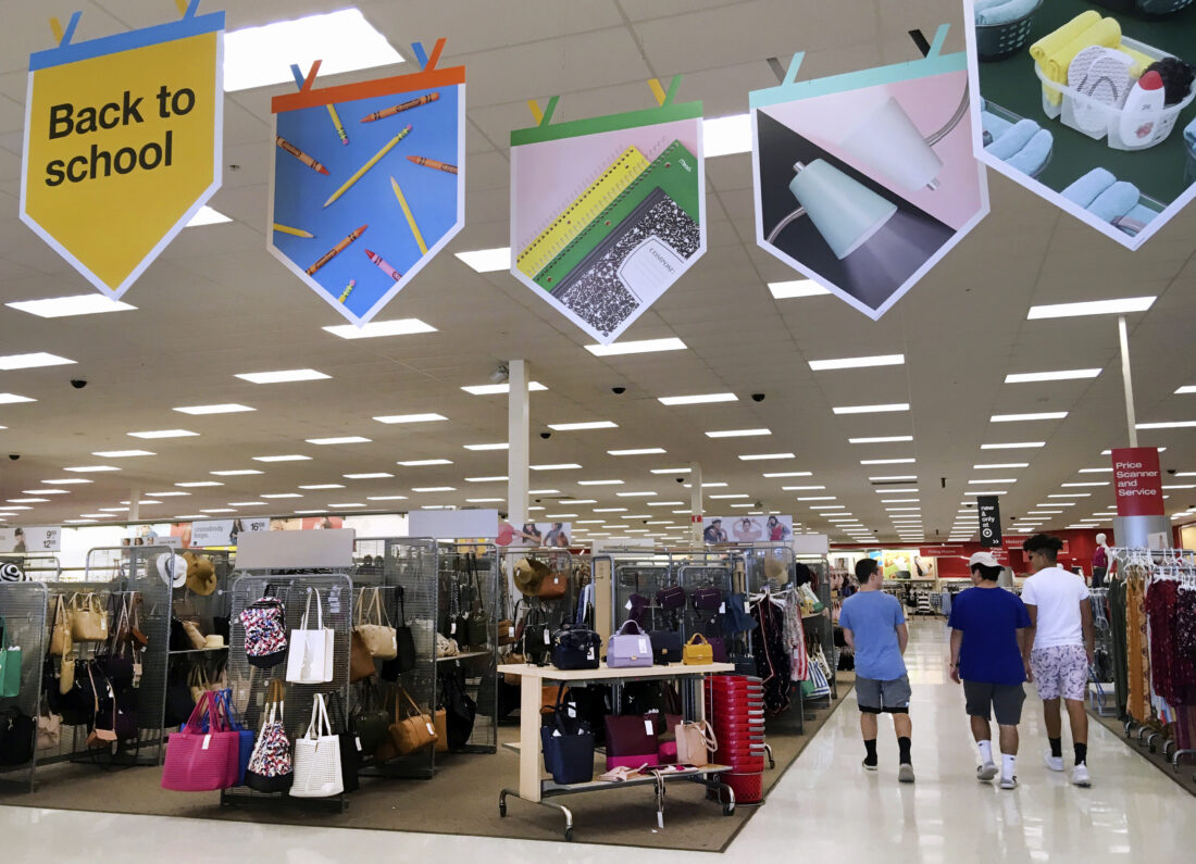Shoppers walk into a store in Methuen, Mass. The 2022 back-to-school shopping season should enjoy strong sales increases from a year earlier, fueled by heavy demand for trendy fashion, though the growth won’t be as robust as in 2021 when business was rebounding from pandemic-related virtual schooling. AP file photo