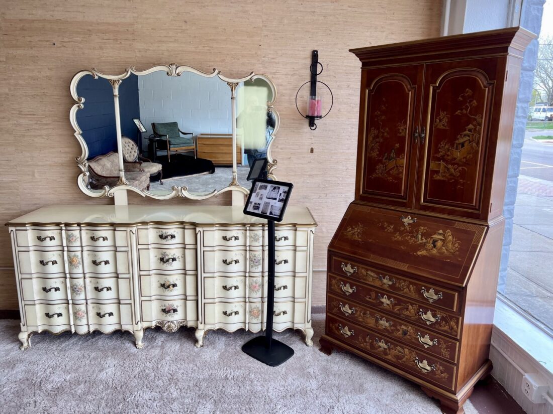 One corner of the history of Jamestown furniture exhibit which will be the main feature of Lafayette Corners’s dedication event at the beginning of May is pictured. Submitted photo