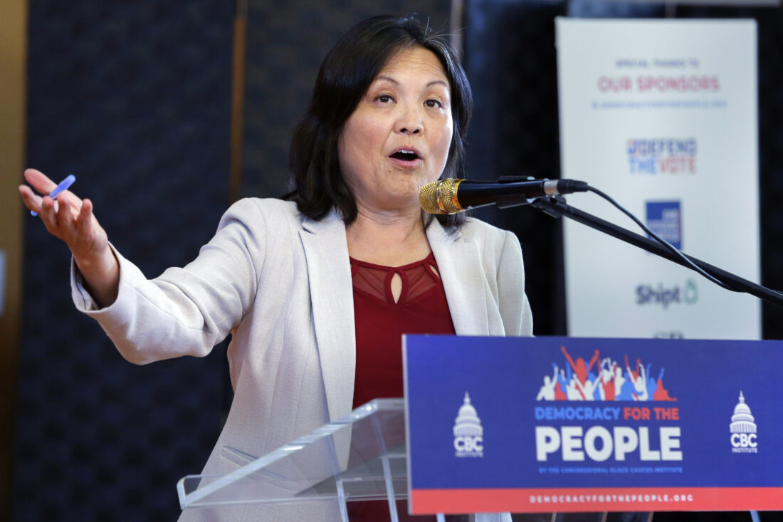 Julie Su, Acting Labor Secretary, speaks during an impromptu appearance at the “Democracy for the People” tour, a race and democracy summit sponsored by the Congressional Black Caucus, Wednesday, July 28, 2023, in Houston. Biden administration proposed a new rule Tuesday, Aug. 29, 2023 that would make 3.6 million more U.S. workers eligible for overtime pay, reviving an Obama-era policy effort that was ultimately scuttled in court. AP file photo