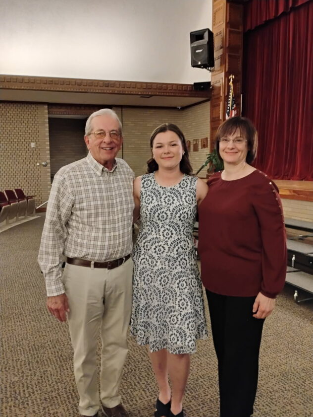 From left are Larry Hallberg, VFW Post 557 quartermaster; Lydia Darr, 2025 Maple Grove High School graduate and scholarship recipient; and Patricia Measer, Post 557 auxiliary president.