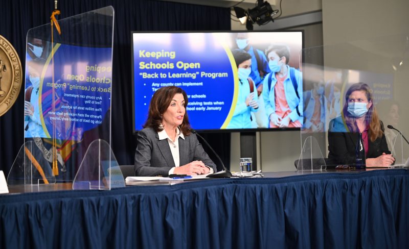 “Let me repeat that — we are keeping schools open because we’re dealing with a very different variant at this time,” Hochul said ...