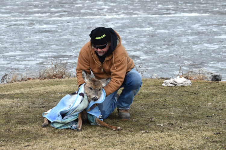 Jeff Huckelbery came across the wildlife while walking his dogs on the Riverwalk at McCrea Point Park. He learned from another man, Tom Shea, that the deer had been in ...