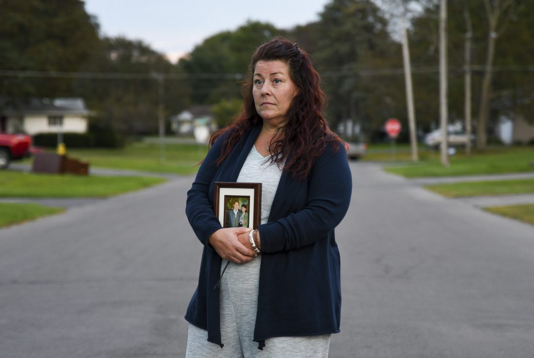 Natalie Walters, 53, holds a photo of her parents, Jack and Joey Walters, near her home in Syracuse, N.Y., Tuesday, Sept. 21, 2021. Walters' father, who was staying at the Loretto Health and Rehabilitation nursing home in Syracuse, died of COVID-19 in December 2020. The facility's staffing has declined during the pandemic and Walters wonders if poor staffing played a role in her father's infection or death. Nationwide, one-third of U.S. nursing homes have fewer nurses and aides than before COVID-19 began ravaging their facilities, an Associated Press analysis of federal data finds. (AP Photo/Heather Ainsworth)