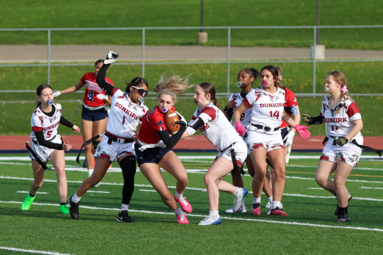 WEST ELLICOTT — Dunkirk rallied after an early misstep to beat Southwestern/Frewsburg 7-6 in Division 4 flag football at Charles A. Lawson Field on Wednesday evening.