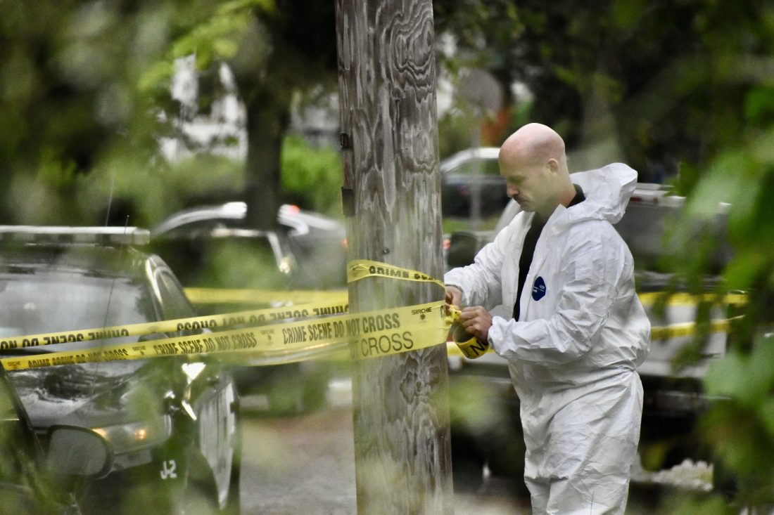 A member of the Chautauqua County Forensic Investigation Team is pictured on Price Street in Jamestown on Tuesday. P-J photo by Eric Tichy