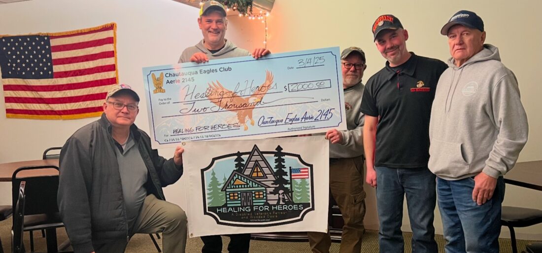The Chautauqua Arie Eagles Club 2145 in Jamestown recently distributed three donations of $2,000 each to local charities. The first donation was presented to Kelly…