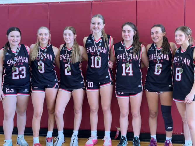The Sherman Elite girls AAU basketball team won the gold championship at the Edinboro Spring Classic Tournament. The Sherman Elite girls went undefeated the entire weekend.